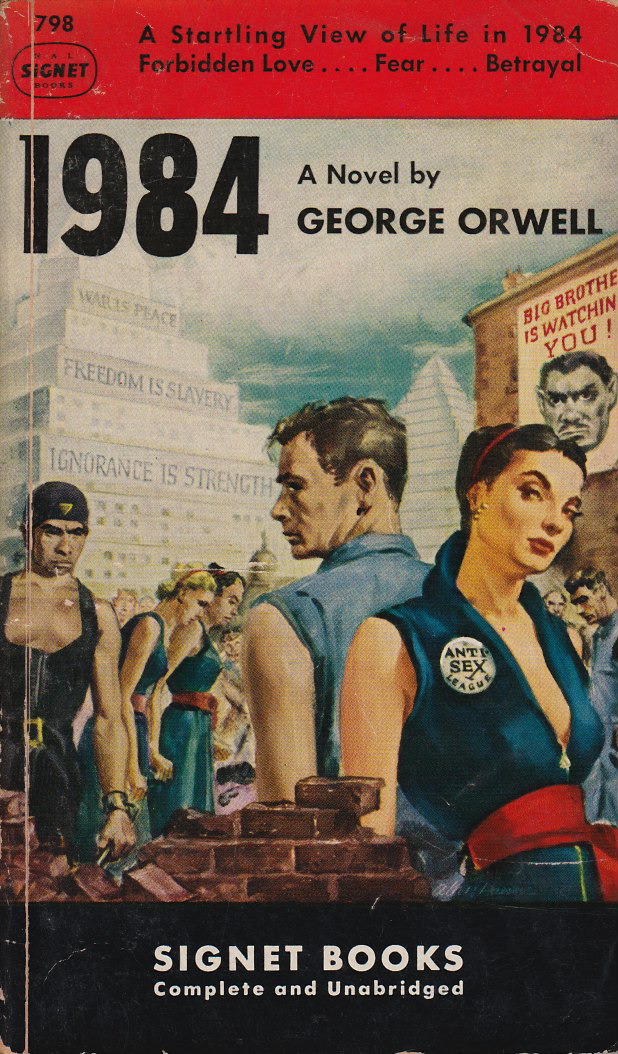 George Orwell avait écrit: «La Novlangue a été la langue officielle de l’Océania. Elle fut inventée pour répondre aux besoins de l’angsoc, ou socialisme anglais. […] Le but de la novlangue était, non seulement de fournir un mode d’expression aux idées générales et aux habitudes mentales des dévots de l’angsoc, mais de rendre impossible tout autre mode de pensée. Il était entendu que lorsque la novlangue serait une fois pour toutes adoptée et que l’ancilangue serait oubliée (vers 2050) une idée hérétique – c’est-à-dire une idée s’écartant des principes de l’angsoc – serait littéralement impensable, du moins dans la mesure où la pensée dépend des mots». (www.librairal.org/wiki/George_Orwell:1984_–_Appendice)
